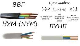 Медный силовой кабель типа NYM состоят из одноповолочных медных жил, а в качестве изоляции и наружной оболочки, используется тот же поливинилхлоридный пластикат. Данные прводники применяется для проводки. За счёт мелонаполненной резины, которая применяется как заполнитель между скрученными жилами. Заполнение выполняется методом экструзии, благодаря чему, подобный он свободно применяется для групповой прокладки.